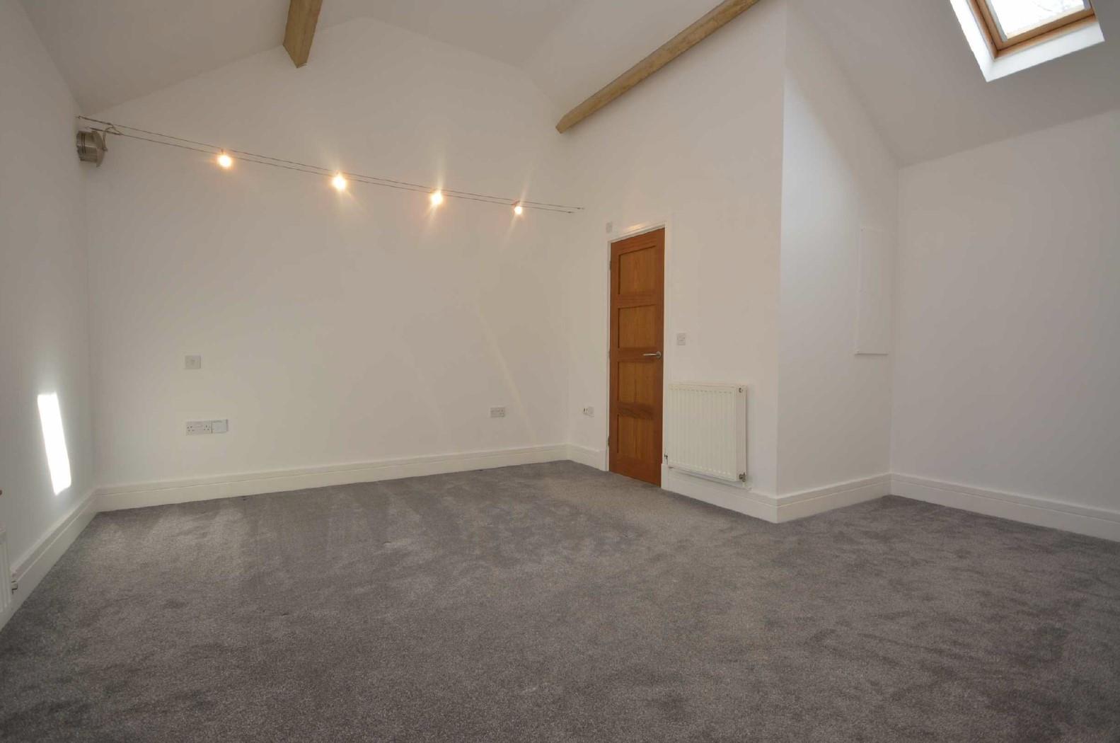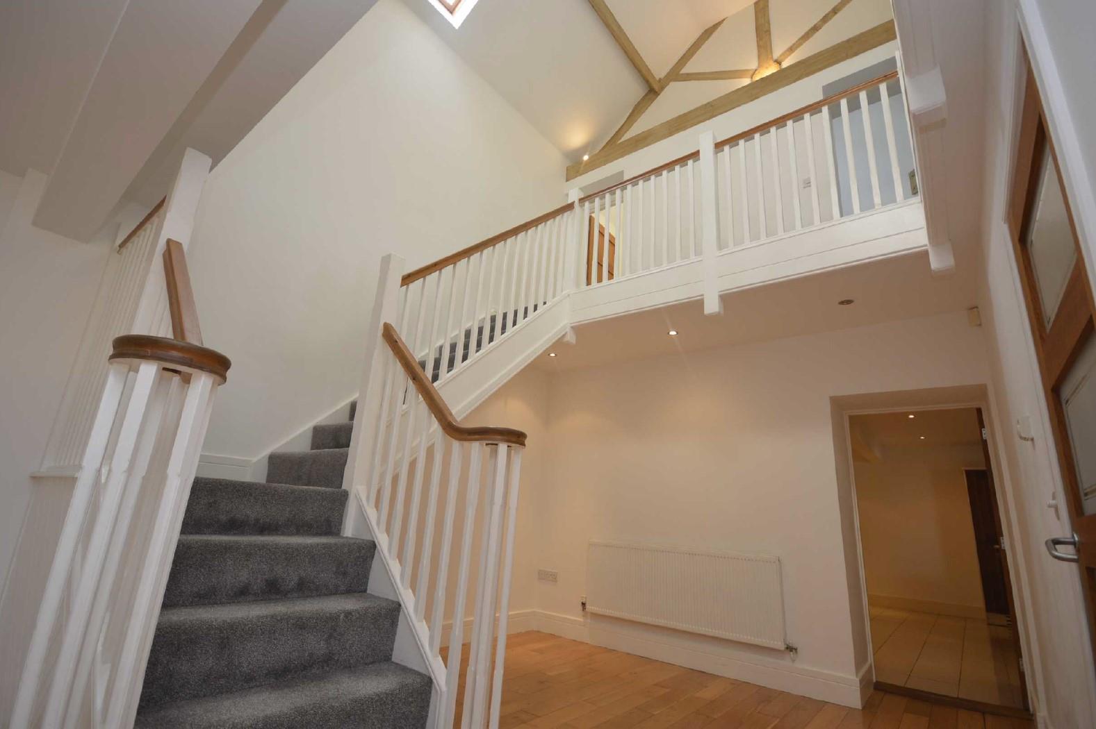 With balustrade to match the staircase, cathedral-style ceiling with exposed trusses and purlins which are illuminated by up lighting and attractive stairwell light. Central heating radiator. Sash-style double glazed window plus double glazed roof light.