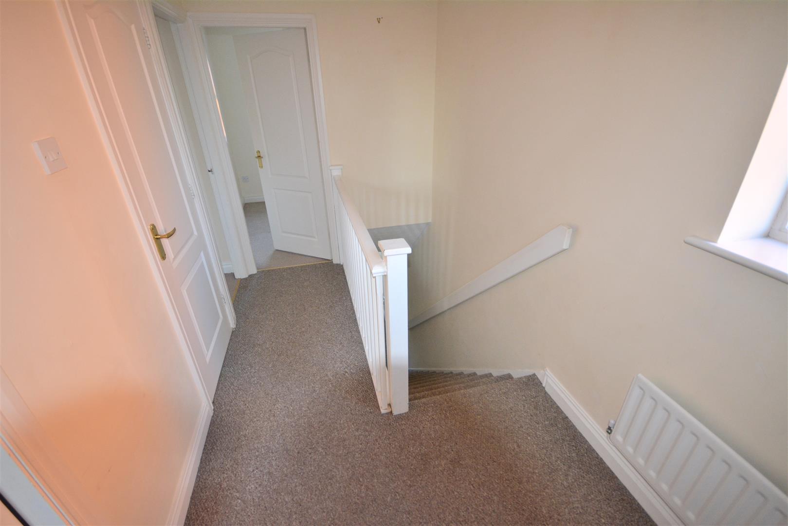 With painted balustrade, central heating radiator, airing cupboard, access to loft space, door to: