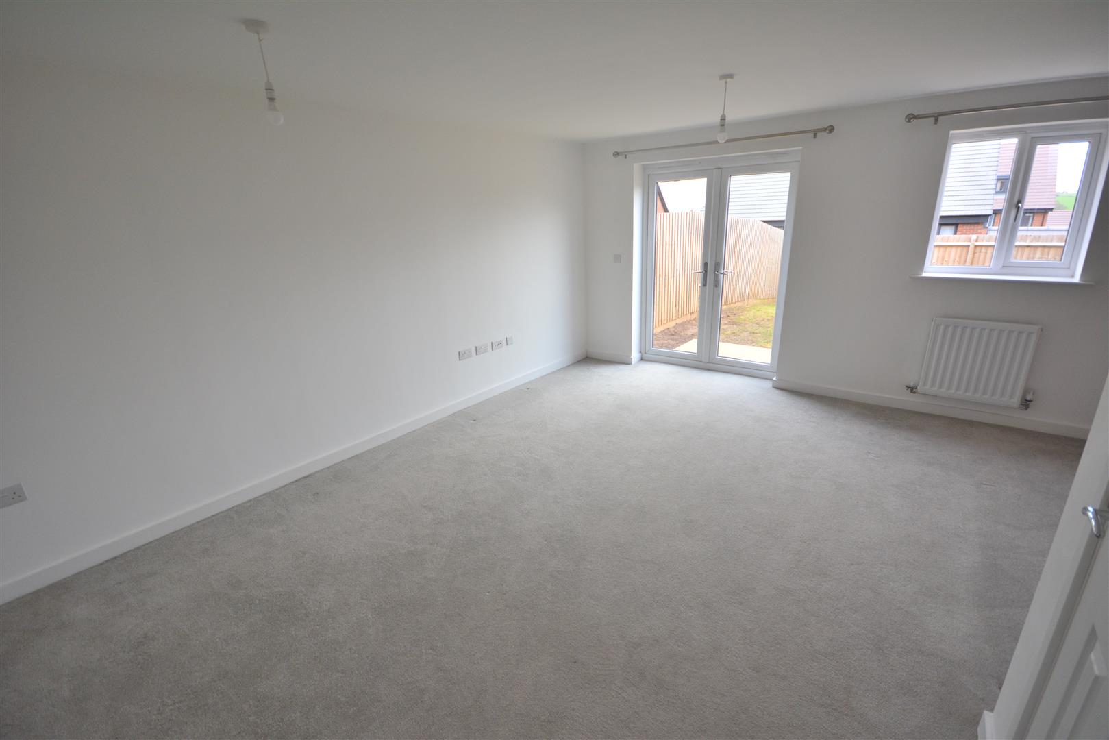 Spacious lounge with fitted carpet, UPVC Windows and double central heating radiator. Access via French Doors to the rear garden.